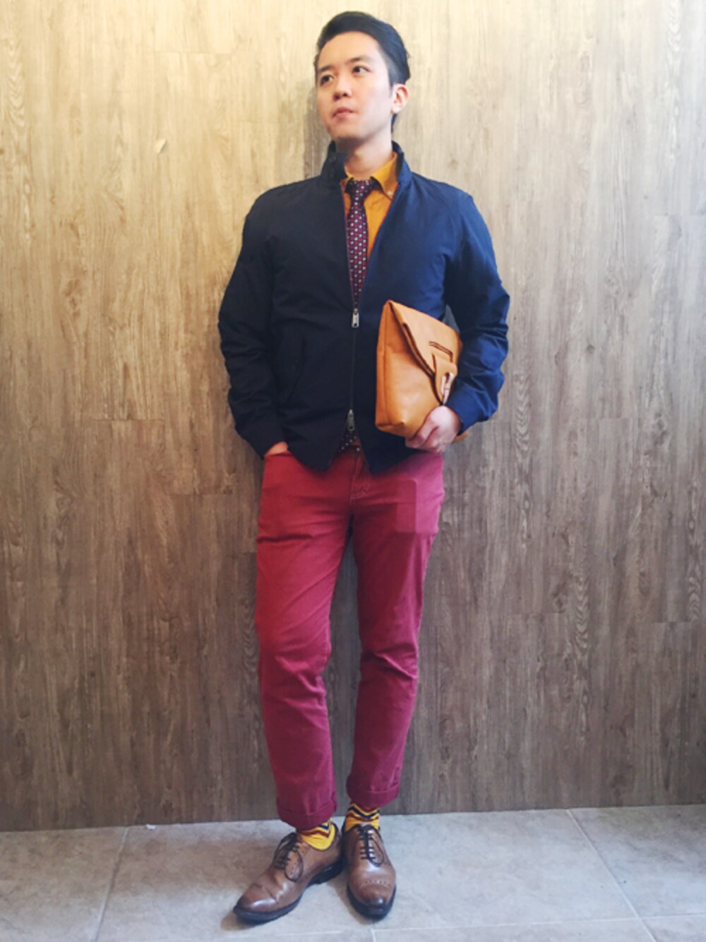 Baracuta Harrington G4 jacket Black Fleece gold polo floral pattern tie Made In Eden Alsego Clutch Hola Classic Chino colour blocking socks