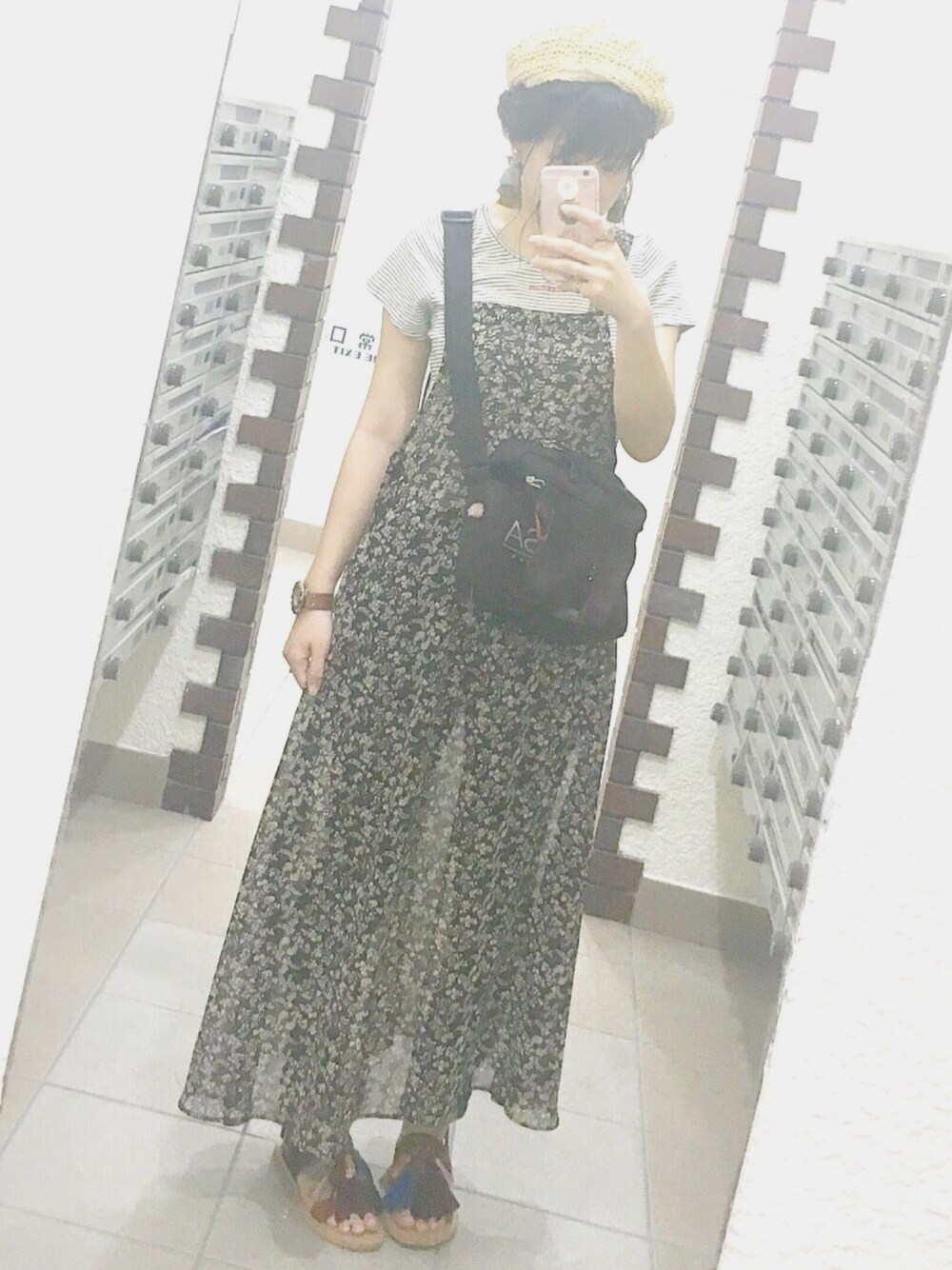 #ootd ボーダー × 花柄 やけど 、細やかな柄なので 、柄柄でも可愛くないですか?💗 中に 、guのスキニー履いてます 🙆♀️🌼 インスタでは 評判良しのコーデです 🤭💕 あ 、ヘアアレンジが人気だったのかも?🤔 ベレー帽 に タッセルピアス映えるように ヘアアレンジしましたっ 🙆♀️ 見ていただけると嬉しいです 💗 → @_chi_po