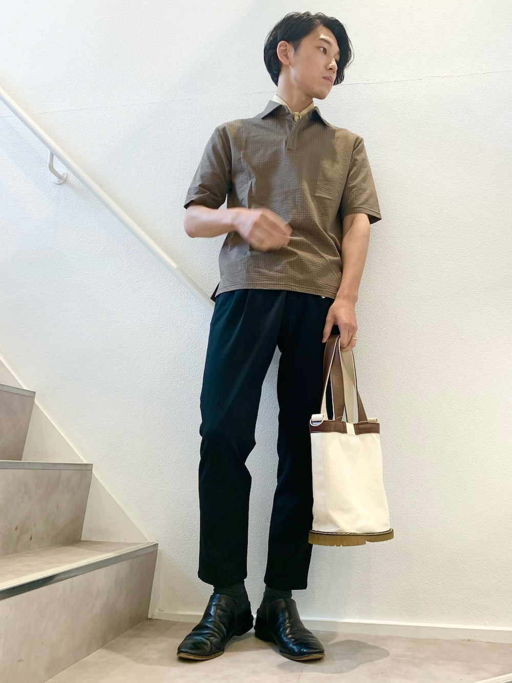 ちよのぶのポロシャツ「デラヴェ サッカー素材 ポロシャツ」を使ったコーディネート