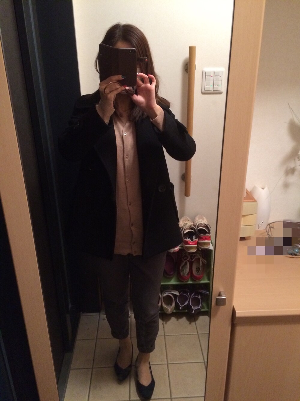 お仕事スタイル♡定番のピーコートはシルエットが綺麗なモノがいいですよね♪