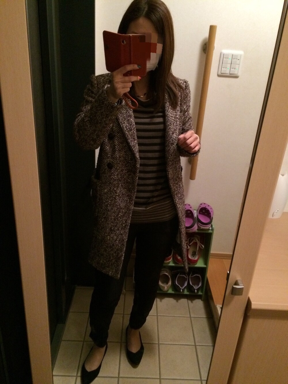 トレンチで出勤しようと思ったら今朝はとんでもなく寒かったので急遽コーデ変更!意外になんでも合うこのツイードのダブルコート。