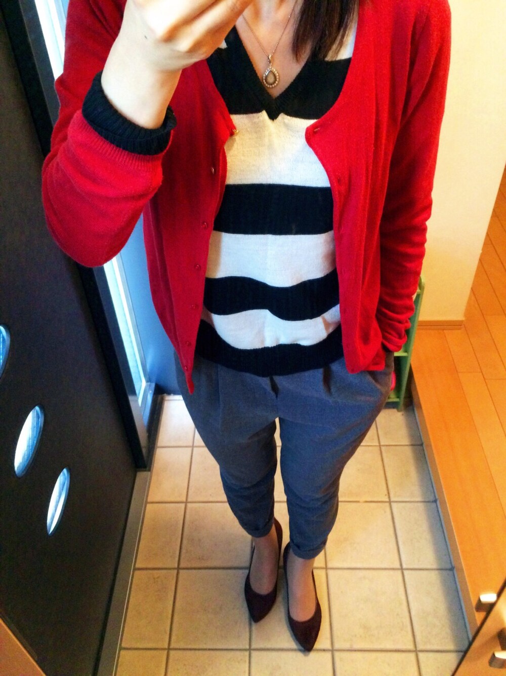 ⓒⓗⓘⓩⓤのニット/セーター「【蓄熱加工&アンチピリング】14FWHOTフトボーダーVネックプルオーバー/554247」を使ったコーディネート