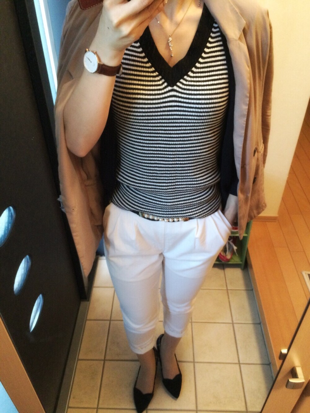 ⓒⓗⓘⓩⓤのニット/セーター「Vネックボーダーニットトップ」を使ったコーディネート