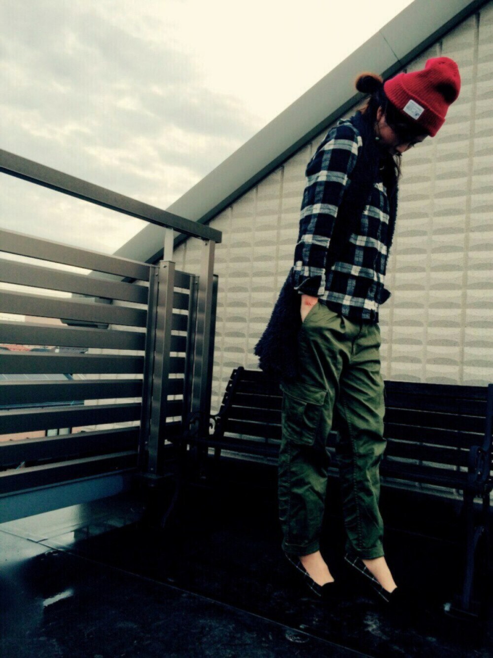 holidayStyle*♬೨̣̥ 今日は久々に赤ニット帽♪ 何着よっか考えてなかったところに可愛いヒントちゃん登場❤️赤ニット帽をマネて、それに合いそうなコーデをchoiceしてみました🎵赤とカーキは最強の組み合わせだと信じてやまない私です◡̈♥︎ ここにスニーカーをもってくると、オバちゃんの若作り感半端ないので(これでも十分ヤバイけど😅)ヒールで、キモチオトナプラスしときました🙄笑 まなみーん❤︎早起き部使わせてもらうね〜🙋毎日4時起きやし、ちゃんと入部条件クリアしてるよね😂