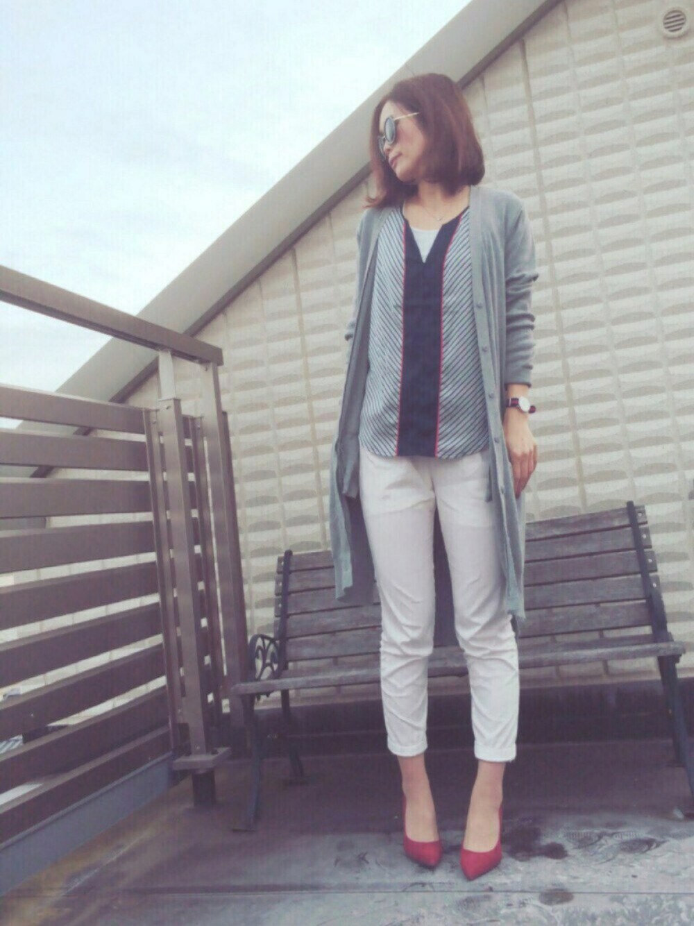 holiday&OfficeStyle*♬೨̣̥ 今朝起きて一目散に鏡チェック うん。いつもの安定のブサイク😚 安心しました😂 昨日のことがあるのでね😂 ここしばらく子供部屋をリフォーム&模様替えしてます。毎週末ニ○リへ。ウチからめっちゃ近いんです❕昨日はシェルフを組み立てたらなんと、歪んでいて旦那さんが"お値段以下のニ○リや‼︎"言うて 激怒😨商品を持っていき、状態を見てもらい無事返金してもらいました😅せっかく頑張って時間と労力をかけて組み立てたものが歪んでいたりしたら悲しい…お値段以上と謳ってる限り頼みますわよニ○リさん❕笑 コーデは今日はオフィス入ってます😁 髪は巻いて軽さプラス。(小窓) ちょっと春っぽいでしょ?☺️ この長さはストレートの時と巻いた時で雰囲気がガラッと変わります。気分で変えられるので、なかなかよいです💓 前下がりでフロントに長さを残してあるのでまとめ髪もできます😊
