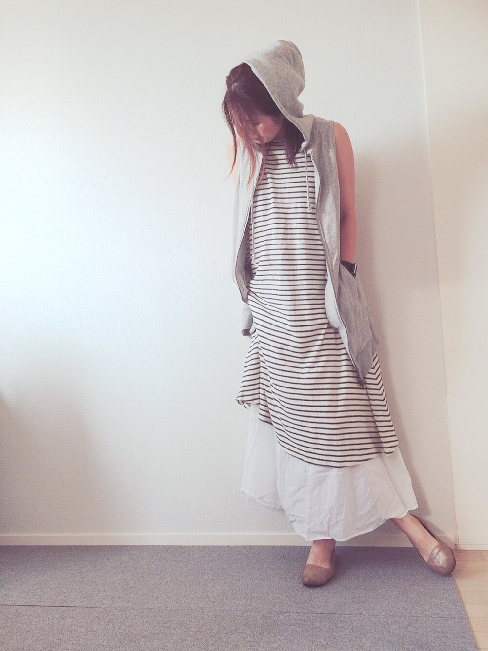 holidayStyle*♬೨̣̥ ZARAのアシメワンピに 真っ白のマキシスカートを 忍ばせました😊 have a nice day❤︎