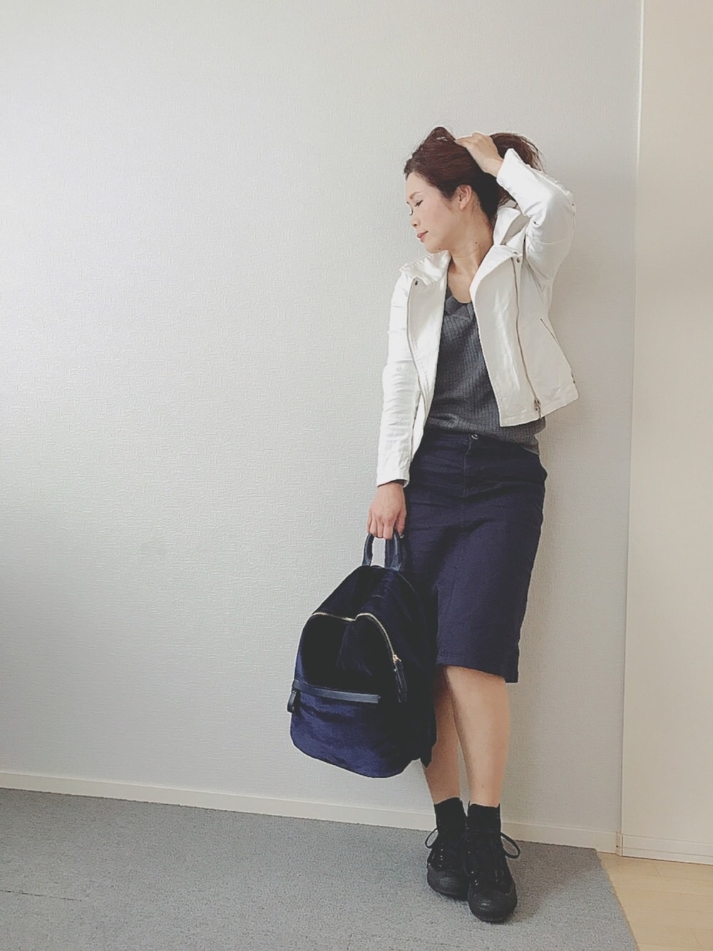 holidaystyle*♬೨̣̥ 真っ白のライダースブルゾンに タイトスカート。 髪ボサボサだったので 急遽手ゴム(笑) ピアスも時計もつけ忘れて なんてシンプル。←と言う名の手抜き。 have a nice day❤︎