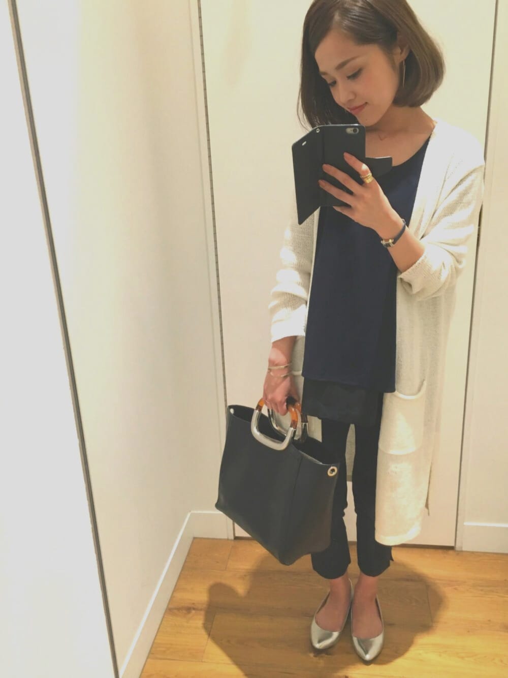 新作のロングカーディガンGET ♡ 中はオールネイビーで挿し色にシルバーを🤘 このカーディガン、したいコーディネートがいっぱい浮かぶ🤔💭次の休みにも着よーっと🤘