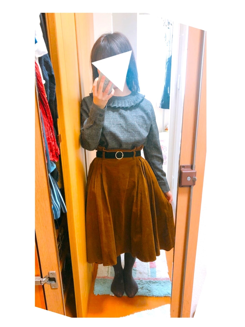 上の服は友達が断捨離でいらなくなったものと言ってくれたものです! 友達とてもオシャレな子だからとてもいいものをいただいてしまった✨ めちゃくちゃ気に入っている☺️☺️ merlotの服これが初めて!!