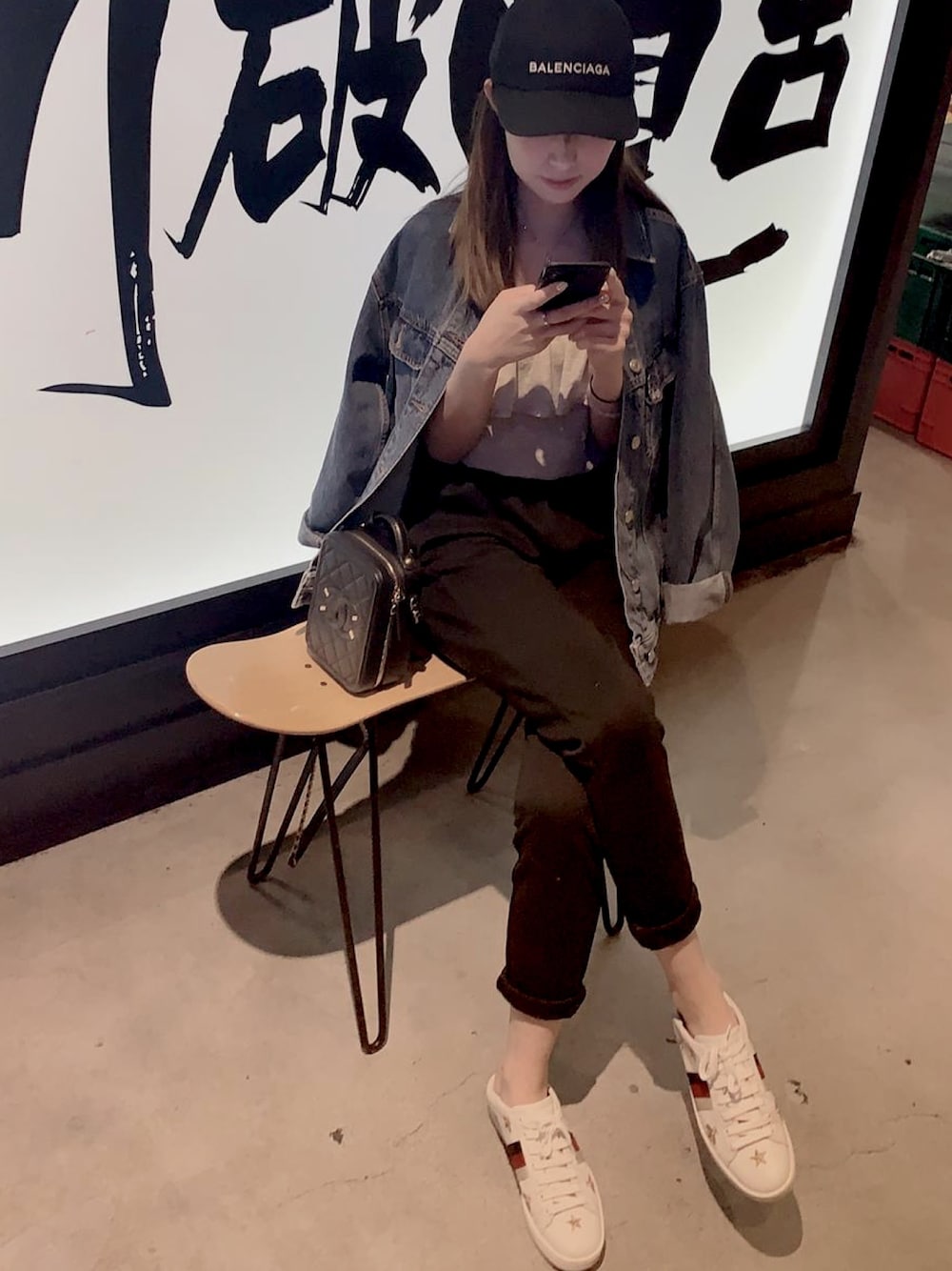 HYのスニーカー「Gucci - Ace Embroidered Collapsible-heel Leather Sneakers - White」を使ったコーディネート