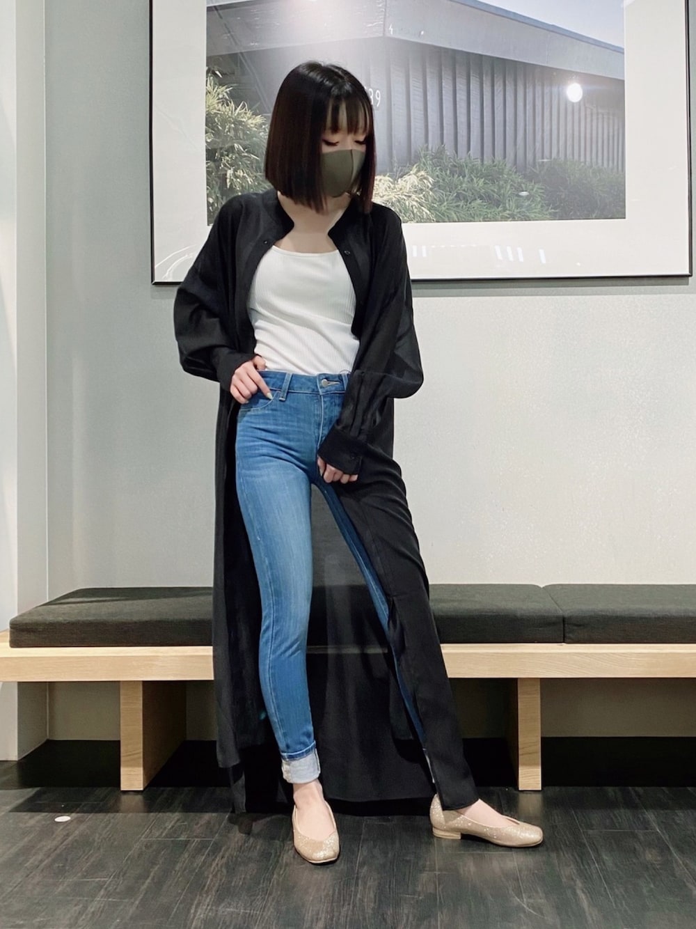 めめのシャツワンピース「再生ポリバンドカラーシアーシャツワンピース」を使ったコーディネート