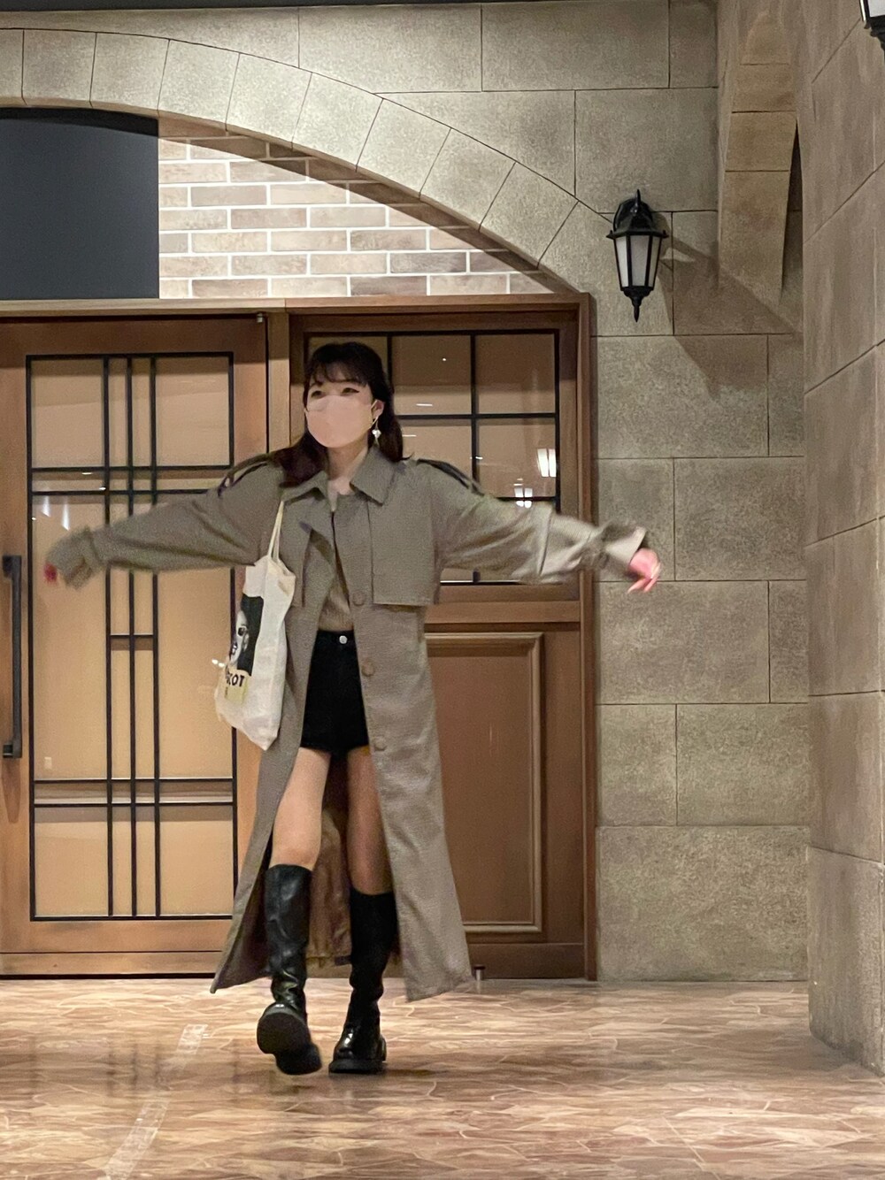 トレンチ×ブーツの組み合わせがしたくてこのコーデに❣️ カジュアルに見せたかったのでMOSCOTでメガネを買ったときのノベルティトートで☺️