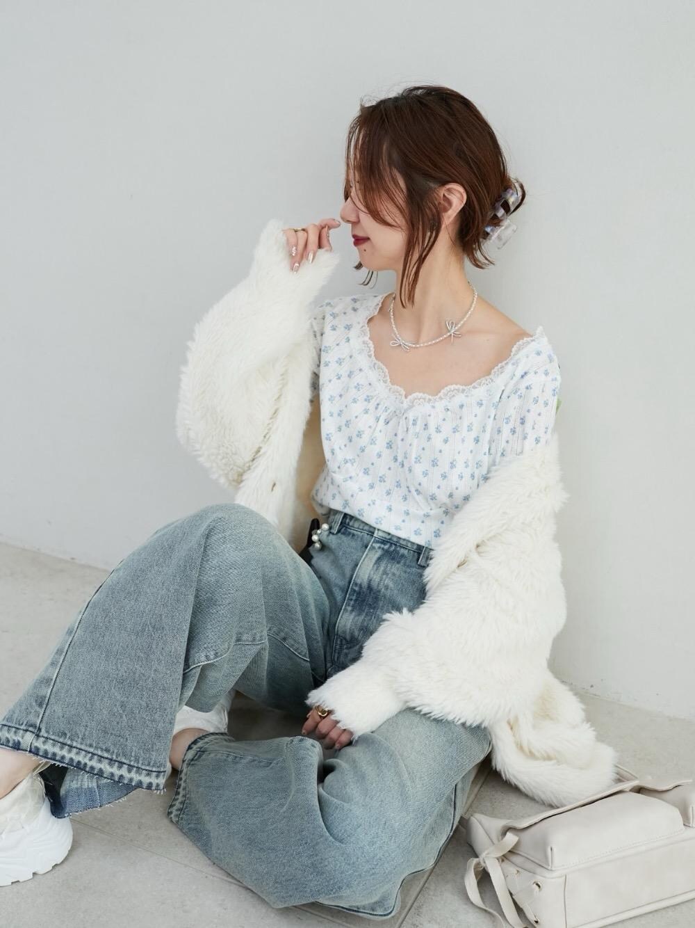 158cm / 骨格ウェーブ / ブルベ夏/普段サイズM/普段シューズサイズ23.5cm 【フワフワシャギーミディカーディガン】 ふわふわゆるっとあざとく着れるカーディガンがリバイバル! おしりもすっぽり隠れる長さで、ぬとりのあるサイズ感です◎ 【ローズモチーフ付き長袖トップス】 ワッフル生地に首元にレースとローズモチーフがついたトップス。 ぴったりし過ぎずラフに着られます! 【2WAYデコリボンスニーカー】 トレンドのデコスニーカー♥ サイズは2wayリボンスニーカーと同じくらいに感じました! ゴツめな割にとにかく軽い!!! 【アンニュイレースアップバッグ】 お財布・スマホ・ポーチと必需品は全て入ります◎外側にポケットがあるので、小さいものを入れても見失わない! 程よいサイズ感でお出かけにぴったり!
