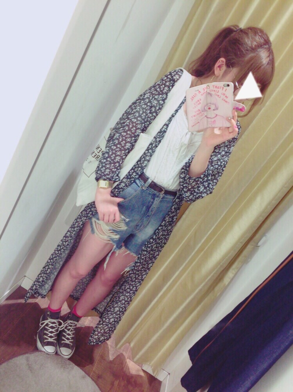 6/20コーデ トップス*PEGEBOY ガウン*イーハイフン ショーパン*古着屋