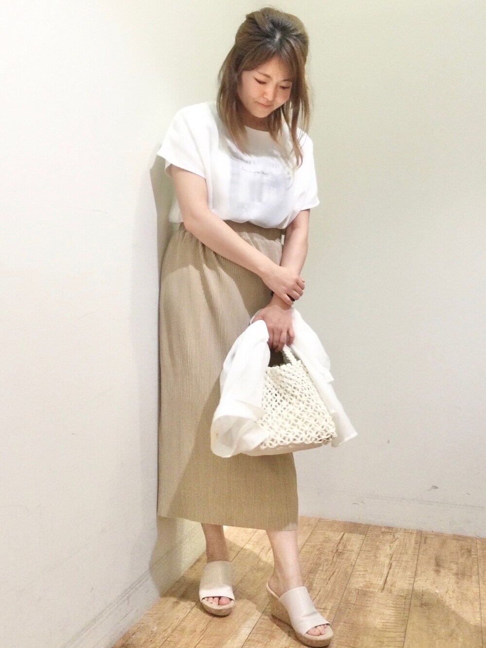 【低身長コーデ】 カジュアルな印象になりやすい Tシャツですがタイトスカート 合わせで女性らしい印象に^ ^