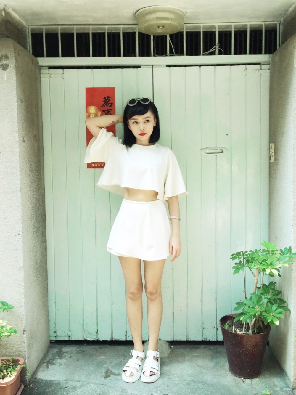 ホワイト系のスカートを着用したレディースの夏コーディネートの1枚目の写真