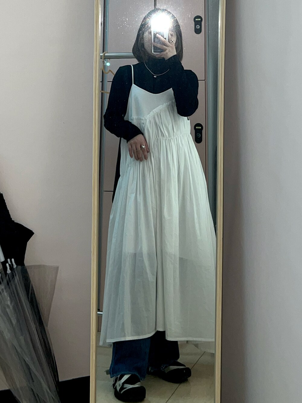 ブラック系のサンダルを着用したレディースの春コーディネートの1枚目の写真