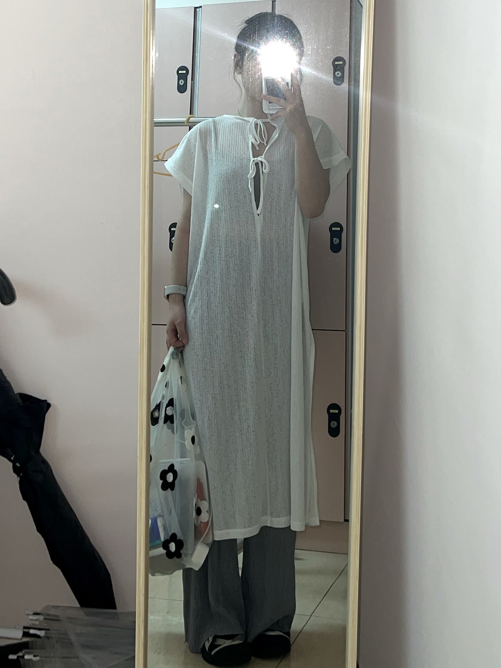 ブラック系のサンダルを着用したレディースの春コーディネートの1枚目の写真