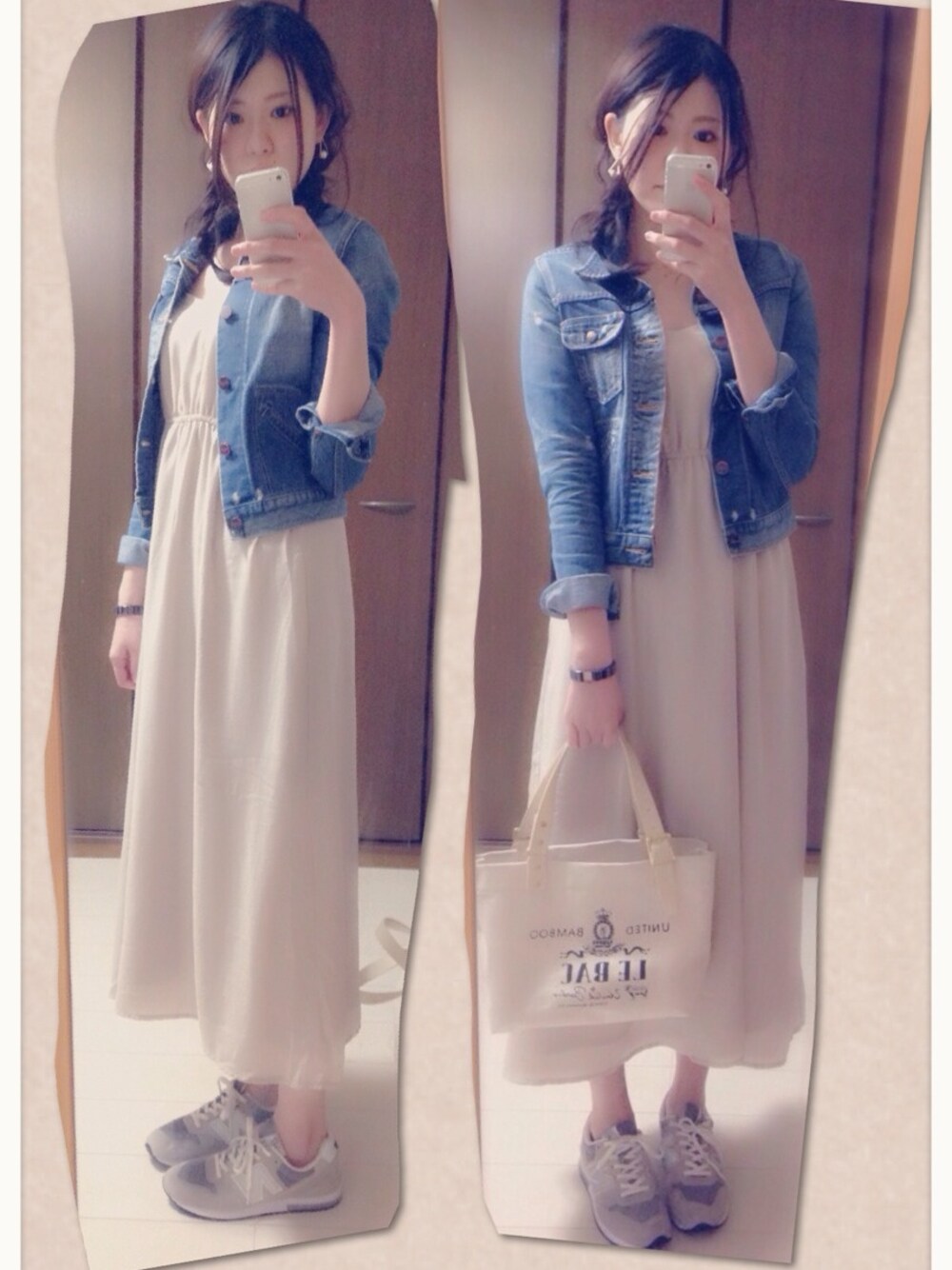 くしゃくしゃ三つ編みでロングワンピの気分´◡`♡ デニムジャケット:Another Edition ワンピ:KBF バッグ:unitedbamboo シューズ:new balance 時計:And A