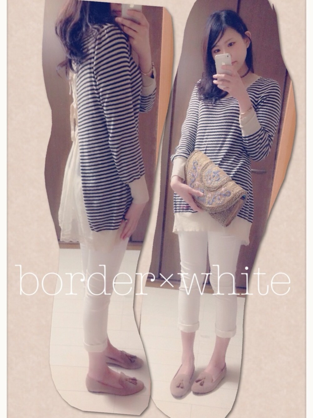 Banner Barrett のトップスはbackがシースルーでレースが付いててとっても可愛いです´◡` 白のボトムと合わせて爽やかコーデ* クラッチバッグ:Another Edition オペラシューズ:VIS