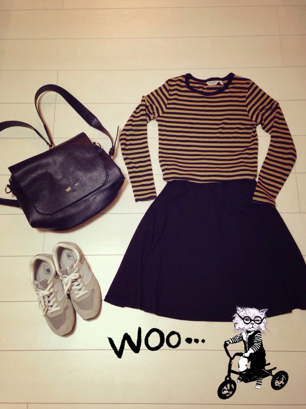 チャリンコ出勤スタイル◎ リュックとスニーカーでどこまでも行けそうな気がする〜🚲💭💛💙