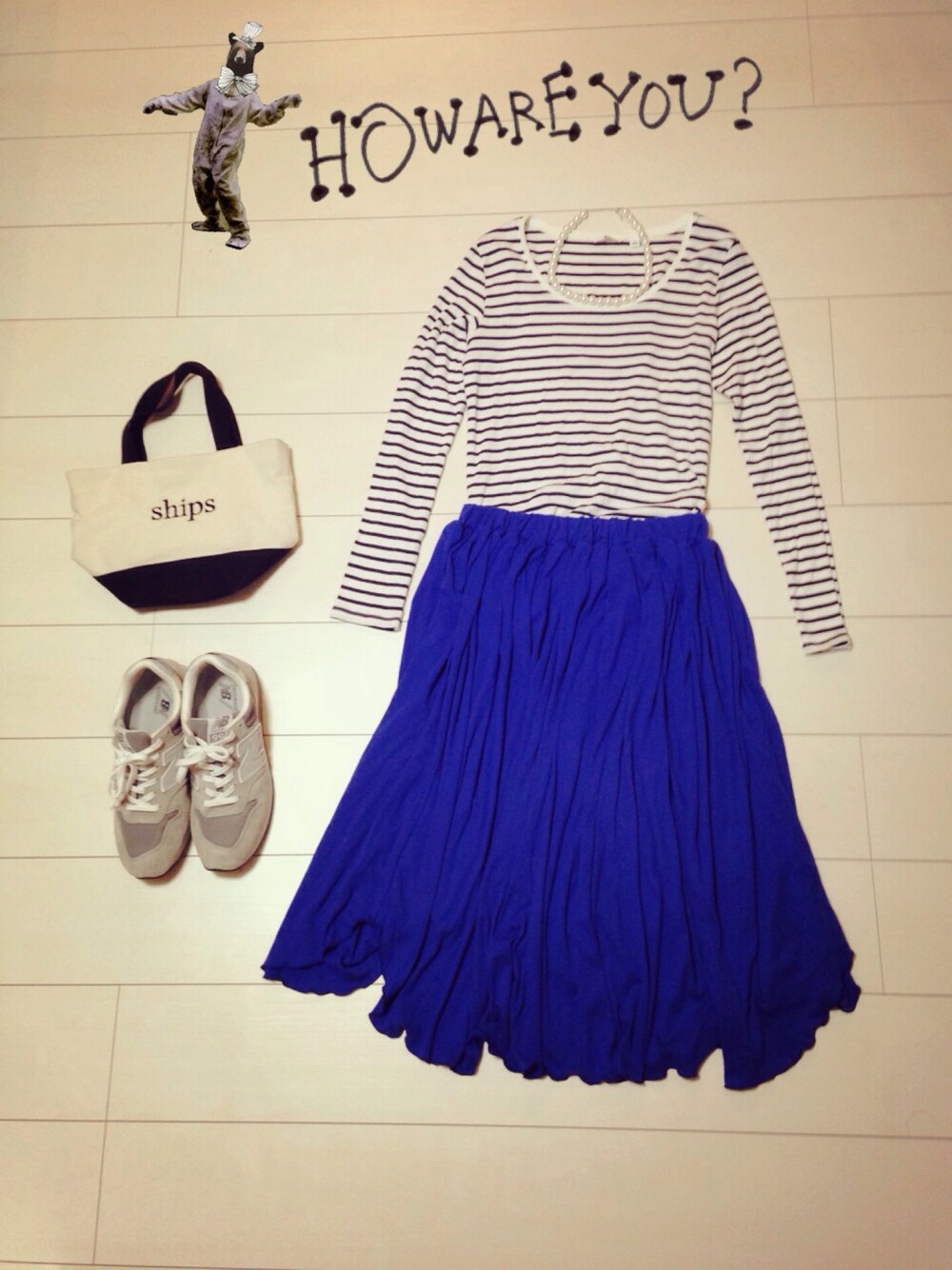 ボーダー率高め(•ө•) ブルーのスカートはお気に入り♡ 白シャツインしても可愛かったぁ◎◎ 今時期はかなーりリピです◡̈