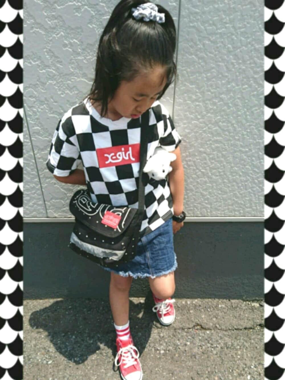 haruのTシャツ/カットソー「チェッカー柄ロゴ入りTシャツ」を使ったコーディネート