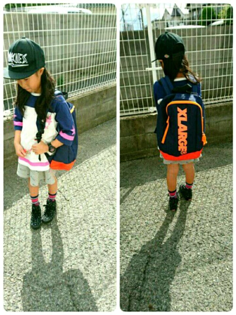 今日の娘ちゃんはストリートコーデです(o・v・)♪ バックパックが最近、コーデに取り入れたい娘ちゃん…少し大きめを買っていたので自転車に乗るとお尻についちゃう〜(><)と言いながら…( ̄▽ ̄;)💧 ルンルンでお出かけして、自転車でテンションが下がった娘ちゃんでした〜(´×ω×`) スニーカーは、私のX-GIRLの黒のビックTに似ていて、黒に微妙に分かるグレーの星柄★見た瞬間、ママのに似てる〜と購入! 本当に似てた〜(笑)