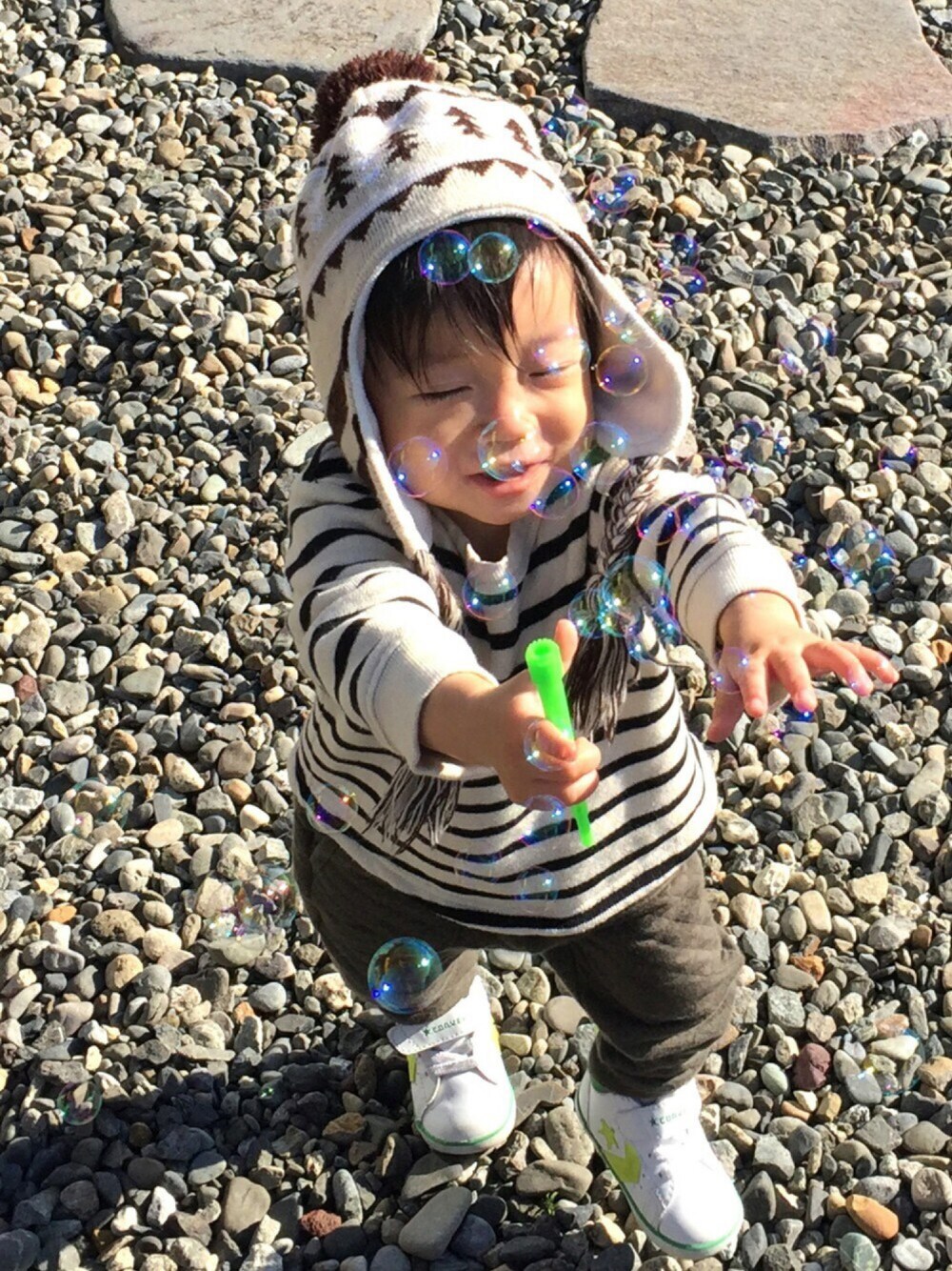 前回の投稿で温かいお言葉ありがとうございました😊❤️ 今回の投稿でまとめてのコメント返信とさせて下さい🙏💦 高熱が出た当日はさすがにグッタリしていてご飯も全く食べずで心配でしたが、次の日には熱も少し下がってご飯も食べれたのでとりあえずひと安心でした😊❤️ しかし…元気なんだけど少し離れただけでギャン泣き😱💦ずっと膝の上にちょこんと座っているし💦これじゃあ何もできないよ…🙀💣 なので家事はほぼ放置して息子と遊んでました💦 そして昨日の朝、背中に湿疹らしきものが出ていたのでそれが突発性発疹だったのかな⁇ 息子は肌が弱いので体調崩すと肌荒れもおこすのでそれで肌荒れたのか見分け付かず…😑💦 まだ、咳少しと鼻水がダーダー止まる事なく出てますがご飯もしっかり食べるし元気になってきて良かったです😍❤️ 来週末から旅行に行くのでそれまでには治さないとー✨ さて、今日の写真は一昨日の暖かい時に外で遊んだ時のです❤️ 今、主人の実家に帰省中なのですが風がすごく強い所なのであまり外に出たくないんだけど息子は外出たくて泣くので渋々外遊びに付き合ってます😑笑 そういえば、熱出してから急に帽子を被るようになりました❤️ 寒いからなのか?嫌がる事なくずっと被ってます😍❤️ 今まで1秒で取っていたのが嘘のようです😄笑 そんな感じでまたボチボチUPしていきますのでよろしくお願いします😻❤️ 皆さんのところにもまた絡みに行かせて頂きまーす😻❤️