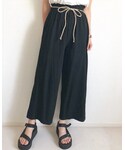 最近暑すぎてお団子率高くてすみません😭 相変わらずのシンプルコーデ☺️💓 デニムが暑くて履けなくなってきて 夏はリネンのパンツとかが多くなります🌻 リネンのワイドパンツはちょこみーの新作🍫💕 7月24日発売です🌟 ベルト部分が麻になっててかわいくて お気に入りです❤❤