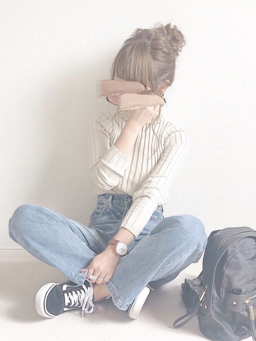 暑くなったり寒くなったりなので このくらいの薄手のものが 使いやすいです😊💓💓 タートルなのでおだんごですっきりと🙆♀️