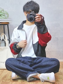 ゆったりワンピにGUのメンズの デニムコーチジャケット🌟🌟 サイズはMです( ﹡ˆᴗˆ﹡ ) この組み合わせお気に入りです💓💓