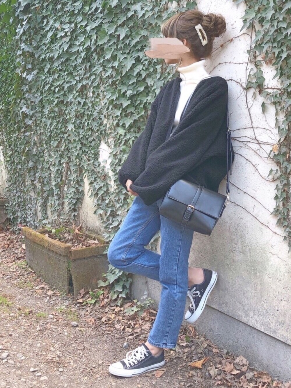 長野2日目のコーデ🌟🌟 シンプルに白ニット×デニムに 黒のボアブルゾンにしました❤ タートルのときはおだんごにしがち🍡 12月もよろしくお願いします🎄🎅🏻