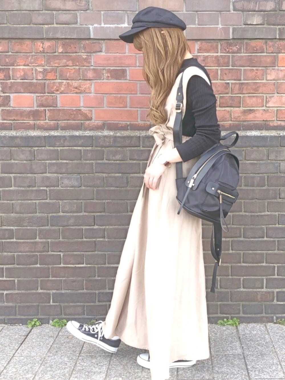 あったかかった日のコーデ🌸 お気に入りのコンビネゾンの スカートver❤❤ 153cmのわたしで足首くらいなので 下半身隠せて軽くてお気に入りの形です🌟
