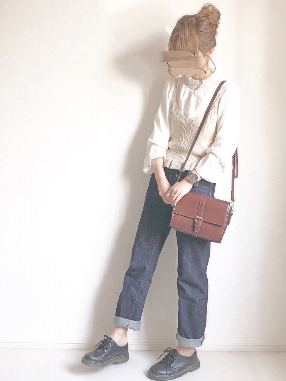 chocoのシャツ/ブラウス「【ZOZO限定アイテム】ニットビスチェ付きフリルネックブラウス」を使ったコーディネート