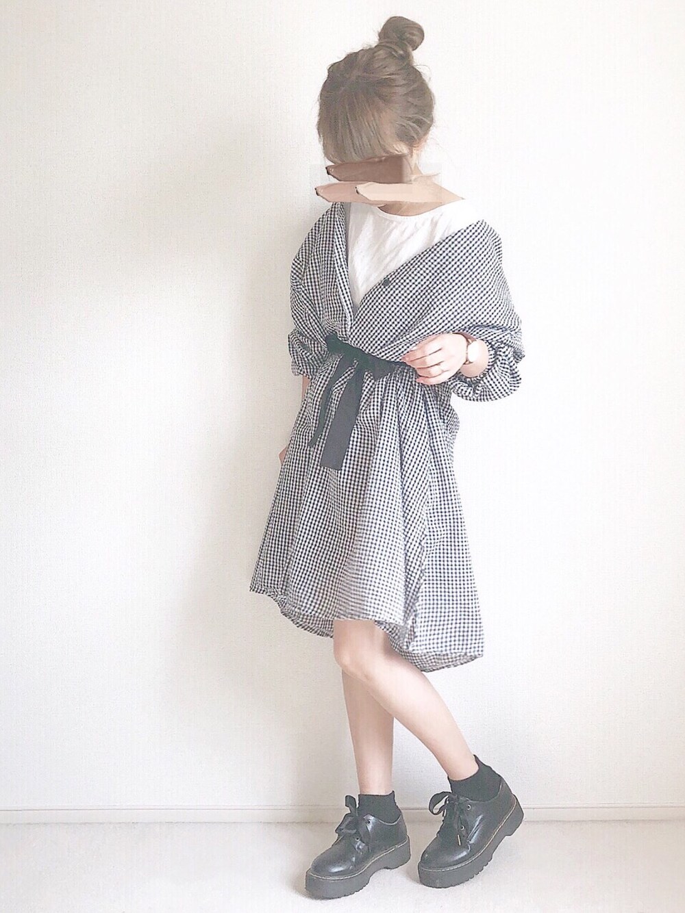 ギンガムチェックのガウンを ワンピースとして着ました❤ ガウンverも載せます🥰🥰💓
