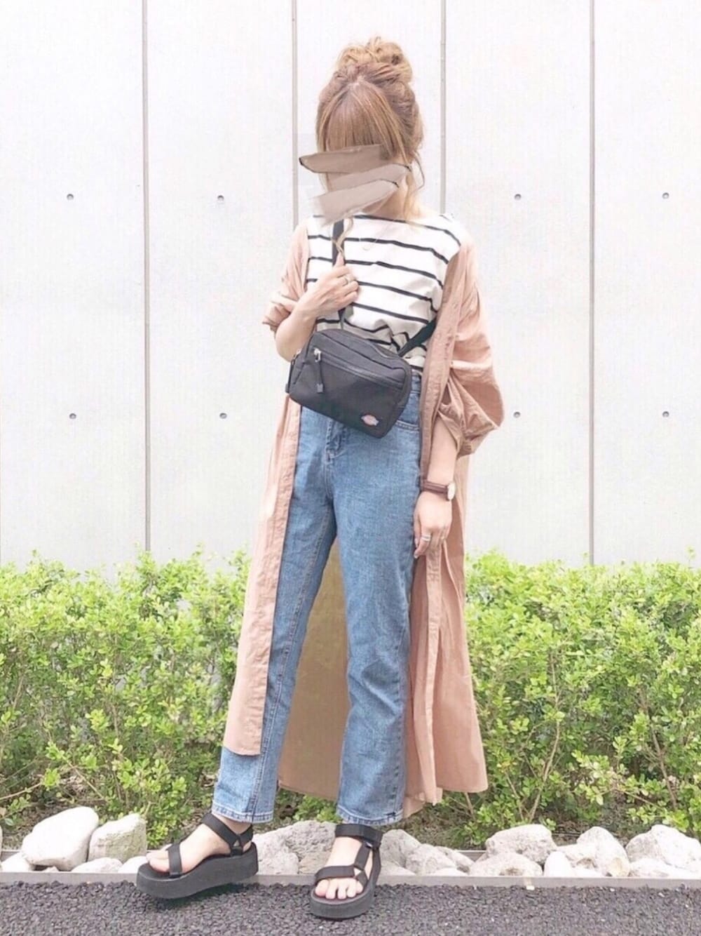 chocomeeのオリジナルガウンで カジュアルコーデ🌟🌟 153cmのわたしで足首くらいの 結構長めの丈感なので背の高い方も 着ていただける丈感かと思います☺️💓 ユニクロのボーダー水色もほしい❤