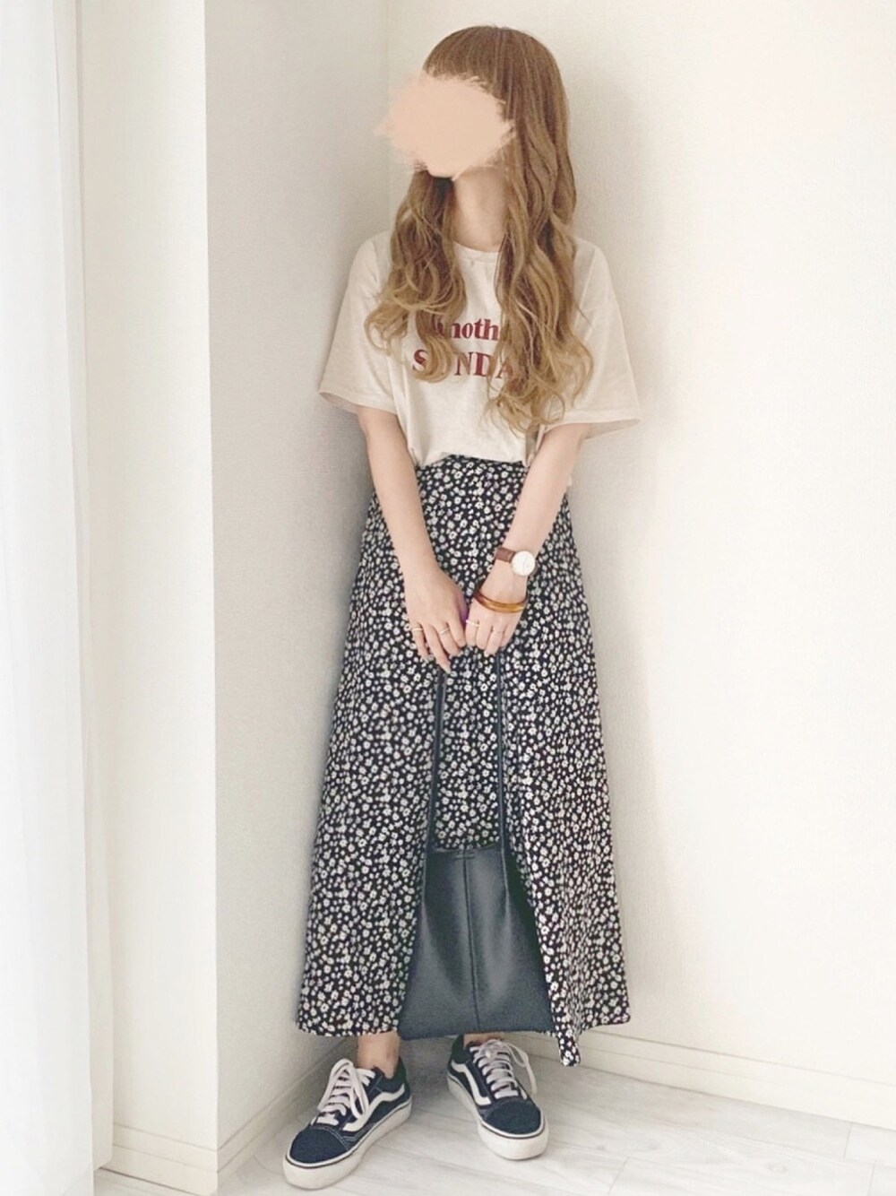 今日もスーパー行っただけの コーデ🥰🥰 韓国で買ったTシャツは部屋着にも♡ スカートは次回新作です🍫