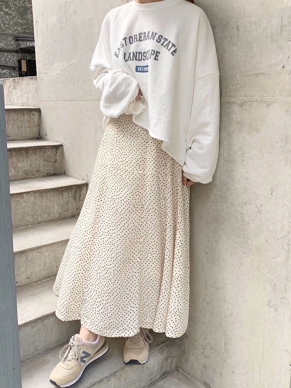 ドットをポイントにホワイトコーデ♡ スウェットは残りわずか☺️💕