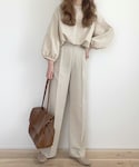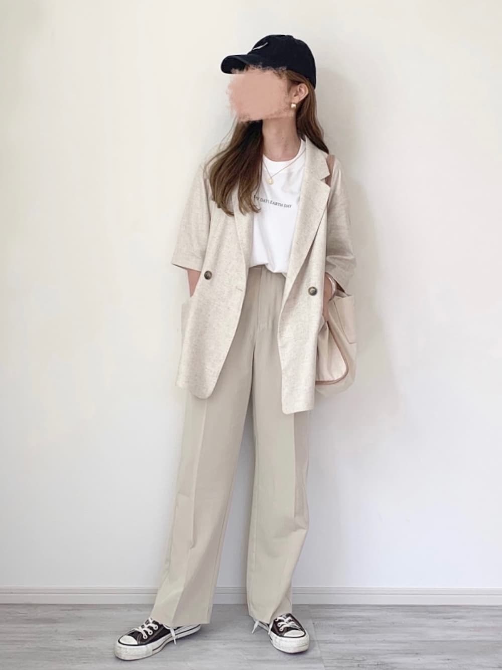 GUのジャケットコーデ♡ インナーのTシャツもGUです🥰 アイボリーのパンツを合わせて セットアップ風に♡♡