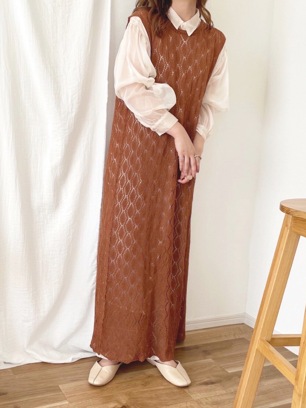 秋コーデ🍁🧡 今から使えるカギアミワンピ♡