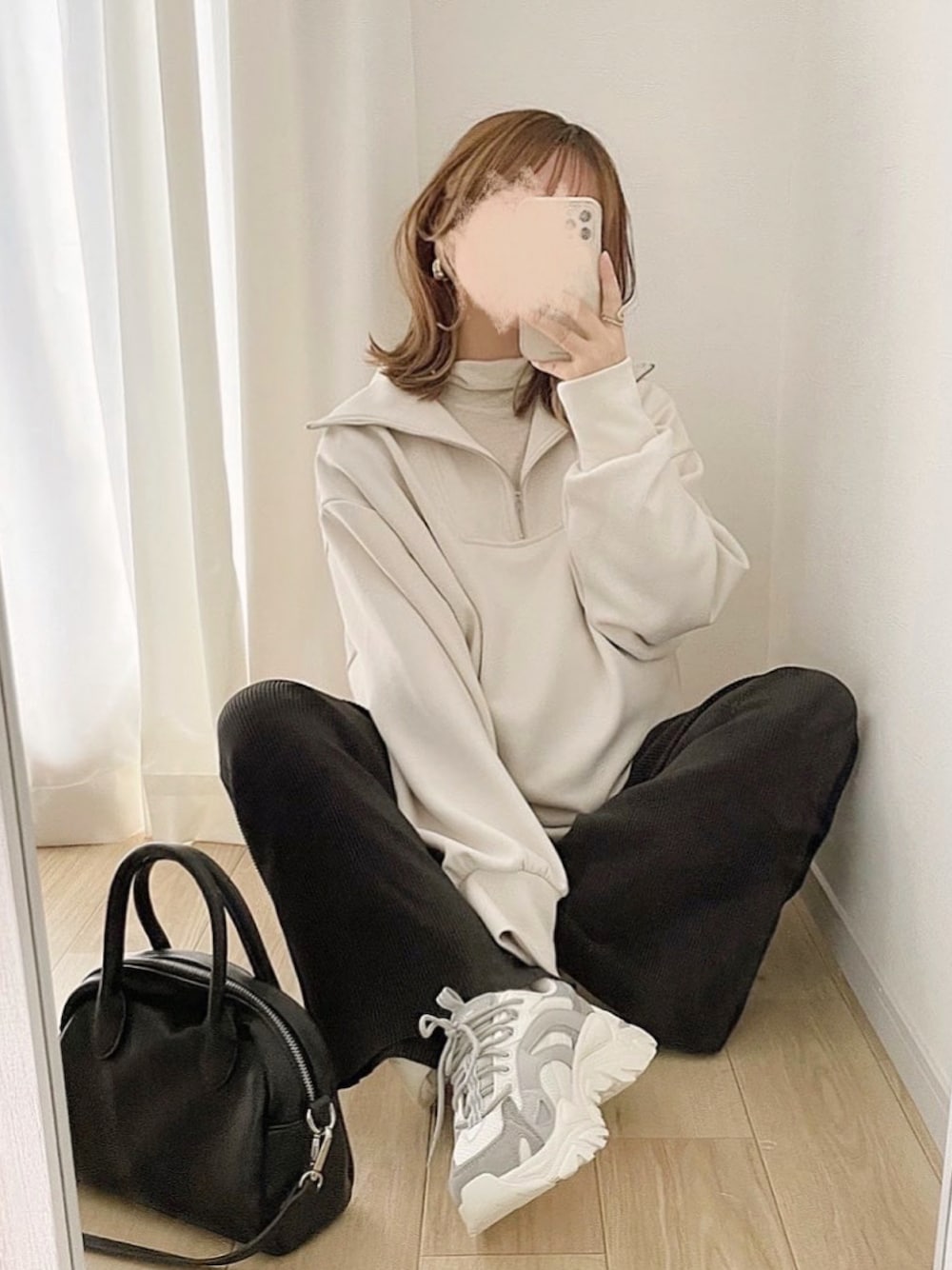 カジュアルコーデ❤︎ ハーフジップトップスかわいい🥰