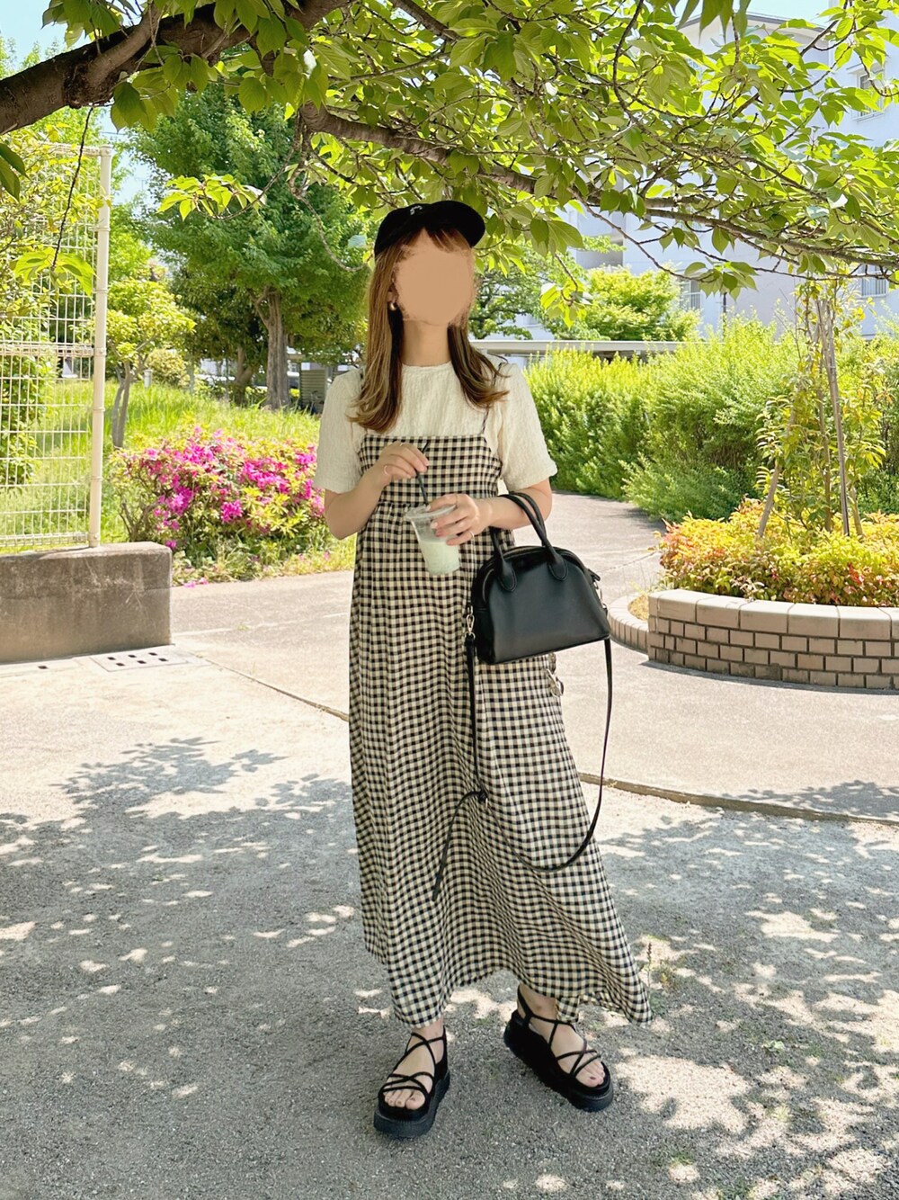 暑かった日のモノトーンコーデ♡ ギンガムワンピお気に入り🥰🥰 トップスは楽天ルーム載せてます🙆♀️ ↪︎ choco