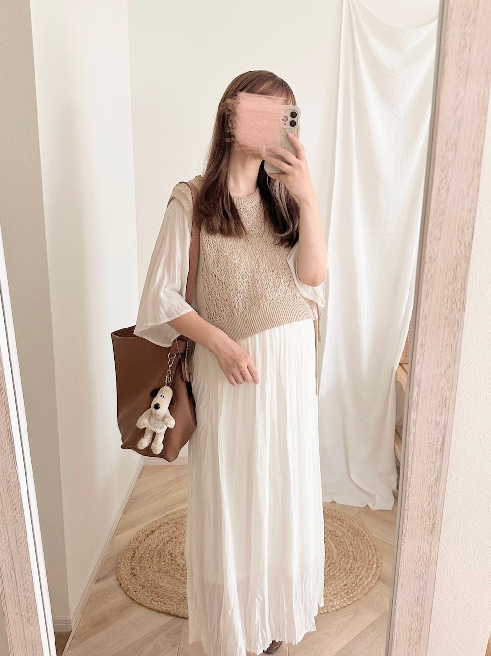 chocoのワンピース「【web限定item】透かし編みベスト+シワ加工シアーワンピース」を使ったコーディネート
