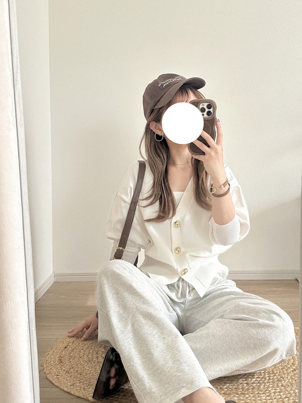 chocoのカーディガン/ボレロ「ゴールドボタンパフスリーブVネックニットカーディガン」を使ったコーディネート
