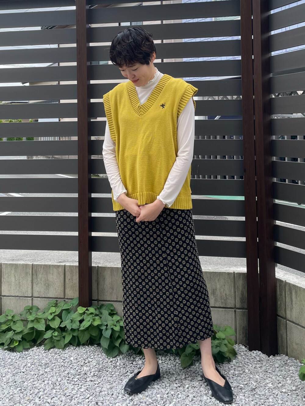 chocoのベスト「《JaVa ジャバコラボ》ワンポイント刺繍カレッジニットベスト」を使ったコーディネート