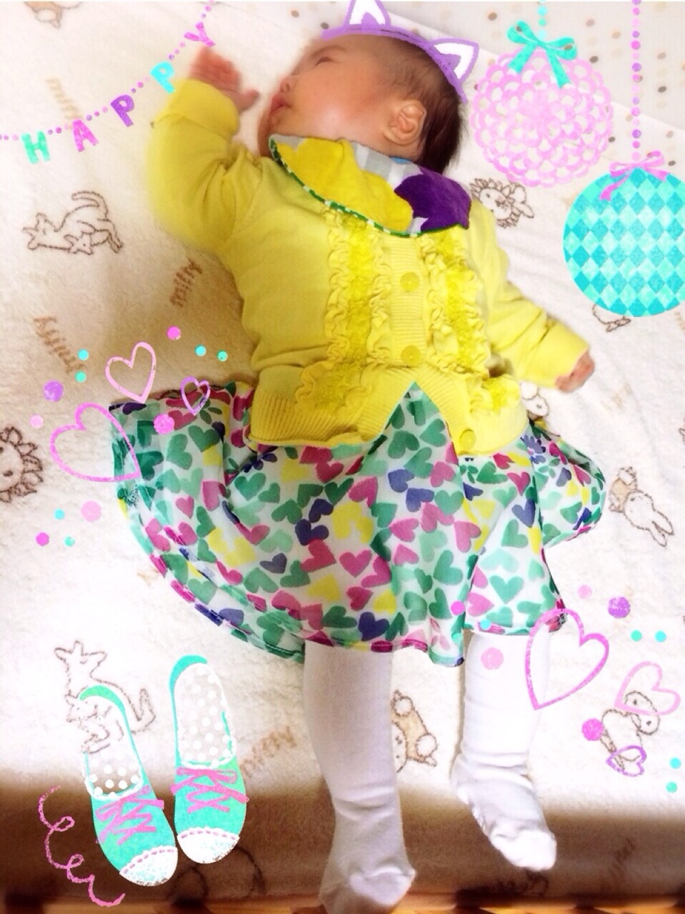 ちょっと街までお出かけ♡ カーディガン : GAP タイツ : GAP スタイ : 知人にマリメッコの生地で作ってもらったもの