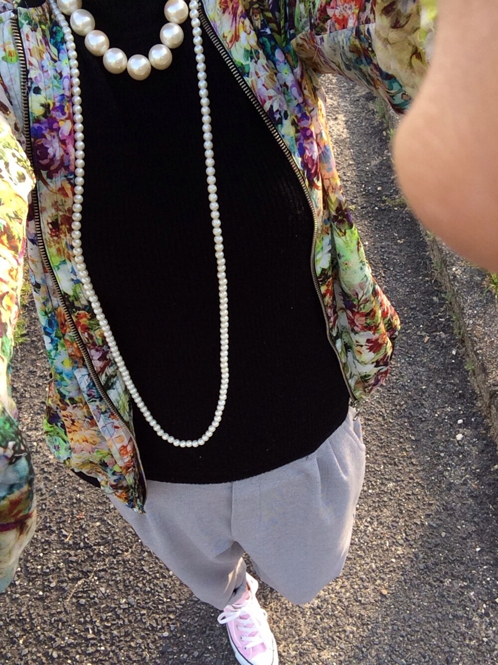 お散歩Style☆なのにアクセはパール(笑) コンバースは自分で脱色したよ♡ …カビキラーで。。。(笑)
