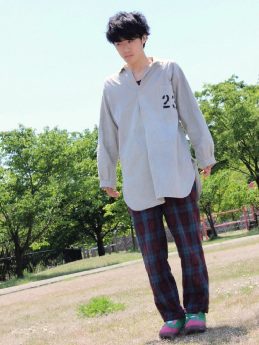 シューズ:icecream 初 です、これから活動していきます よろしくお願いします。 シャツ,チェックパンツ,シューズ は サントニブンノイチさんで購入しました。
