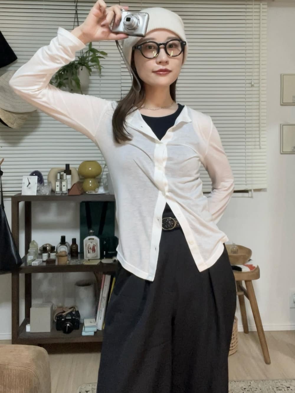 小物を取り入れました〜!夏服+小物で秋っぽさをだしていくという作戦です🙂↕️🔥❕ commesiのトップスめちゃくちゃ使いやすいよ〜〜!色違いで黒も欲しい🐦⬛